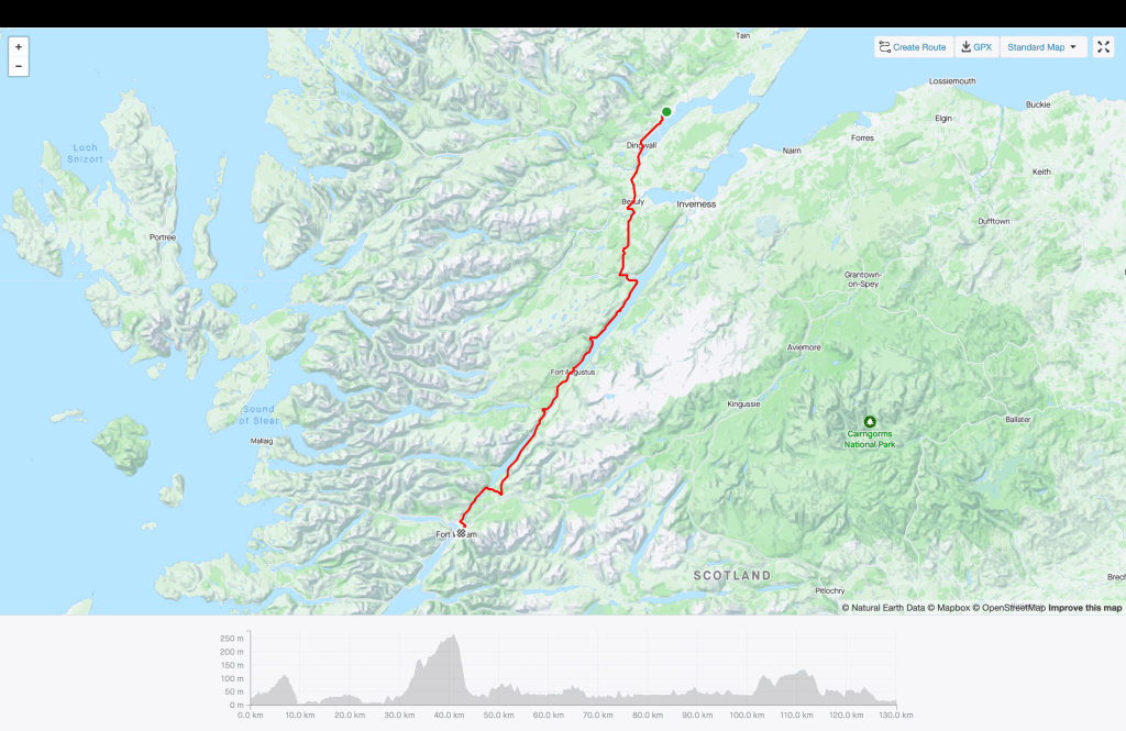 We rounded Loch Fyne and the eponymous Oyster Bar HQ and headed for the Climb of the Day. I had been waiting for this, because it was such a fun climb when I did LEJOG in 2018. This was from the other direction, of course, and it is in this other direction that it features in various “best 100 cycling climbs in the UK” lists. Irrespective of direction, however, the climb is called “Rest and be Thankful”, so named because the soldiers who built the military road inscribed these words on a stone in 1753. The climb resonates with my LEJOG friends of 2018 (when it also rained, hard), and for them, here is a view from the top. Pretty spectacular.